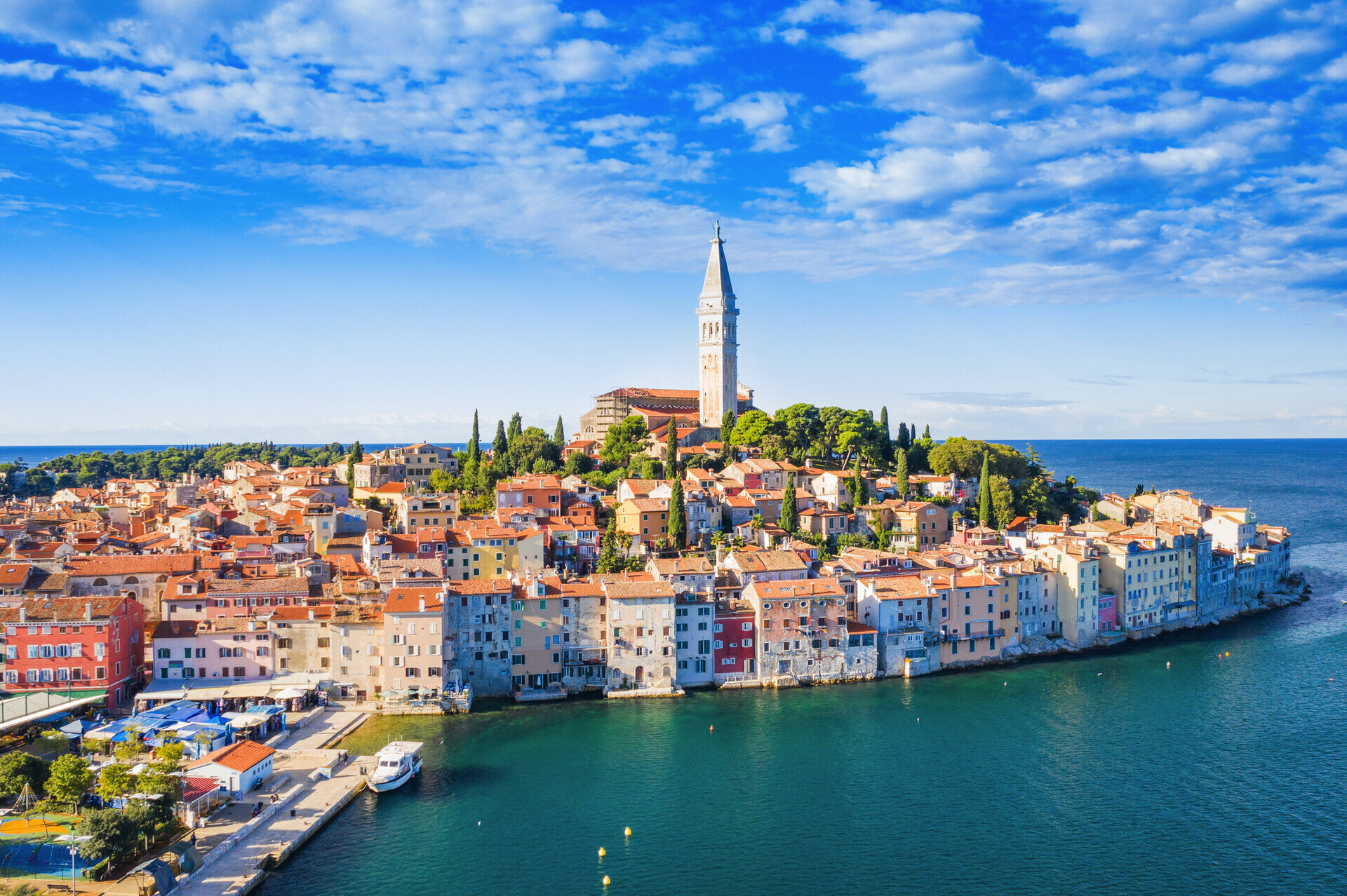 Die heutige Ausflugsfahrt führt entlang der traumhaften Küstenstraße nach Rovinj, eines der schönsten Städtchen Kroatiens. Die Altstadt, malerisch auf einer Halbinsel gelegen, bezaubert mit engen, kopfsteingepflasterten Gassen, bunten Häusern und der markanten Kirche der Heiligen Euphemia, die stolz über dem Meer thront. Während einer Schifffahrt durch das vorgelagerte Inselarchipel sehen Sie kleine, unberührte Inseln, bewaldete Küsten, versteckte Buchten und genießen wunderbare Ausblicke. Am Nachmittag Rückfahrt zum Hotel. (F,A)